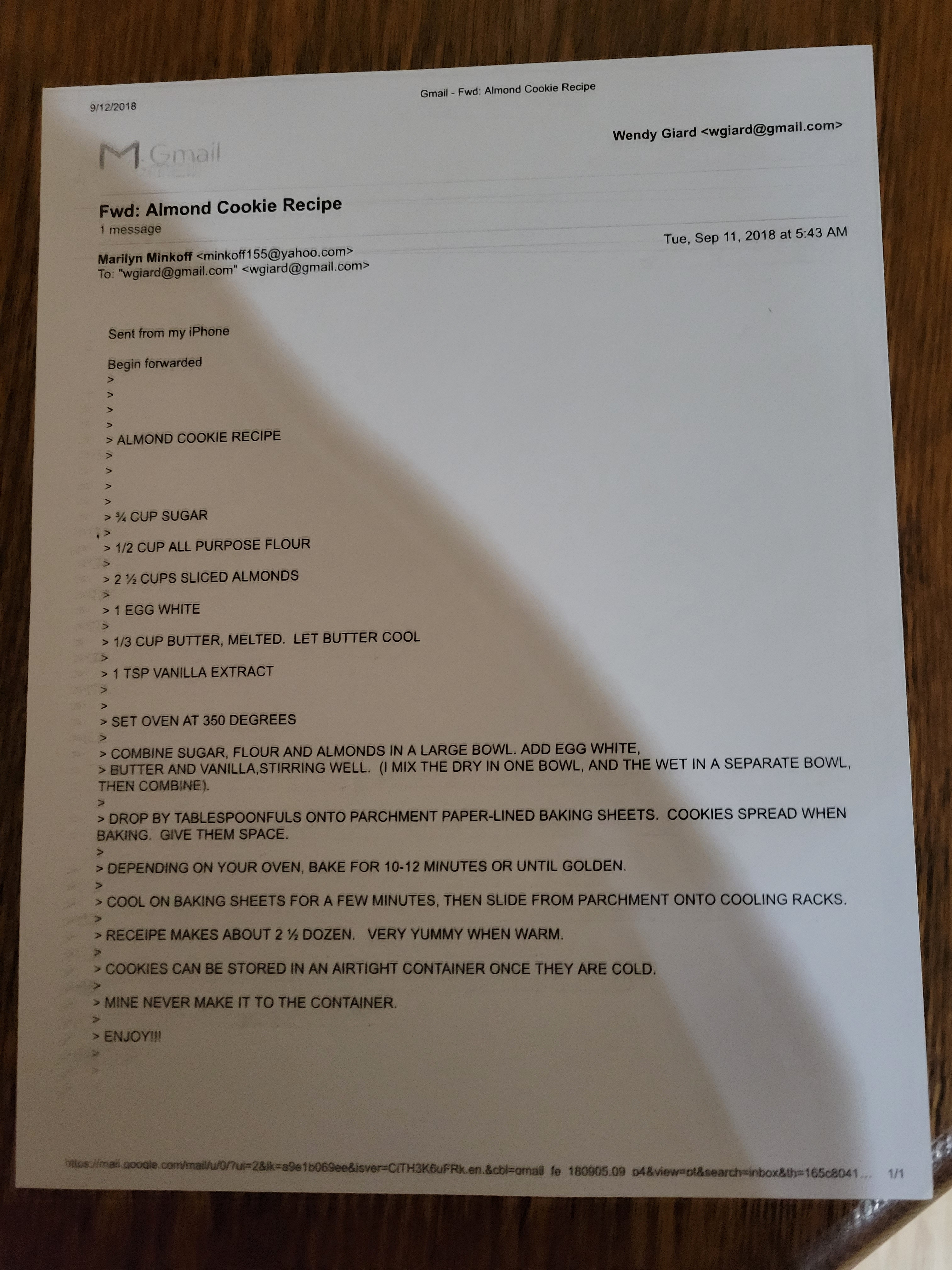 Almond Cookies (Wendy Giard):